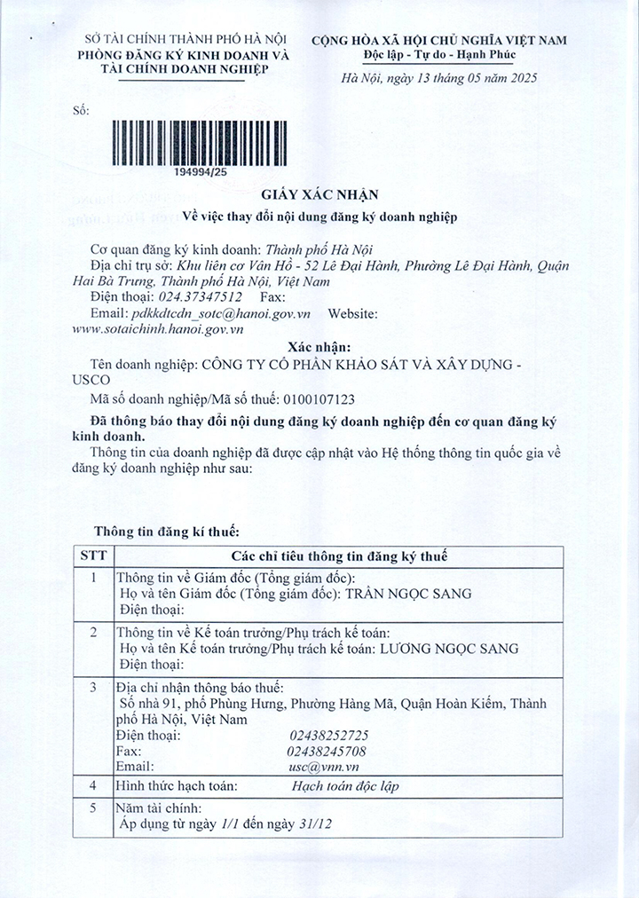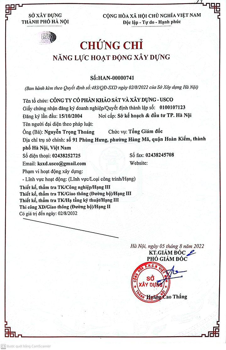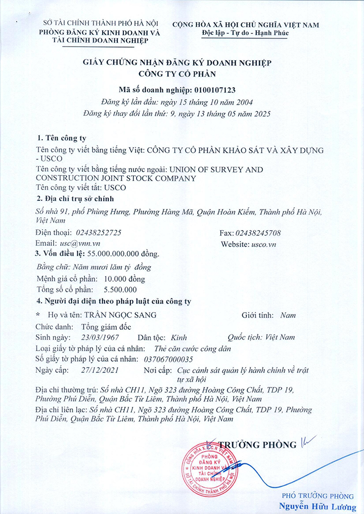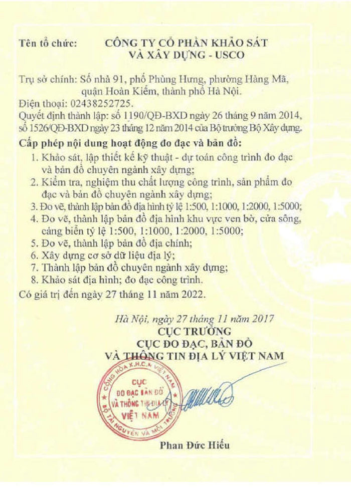 USCO được cấp Chứng nhận quản lý chất lượng ISO 9001:201527/09/2021 Ngày 24/9/2024 Công ty Cổ phần Khảo sát và xây dựng- USCO được cấp Chứng nhận quản lý chất lượng ISO 9001-2015 ...