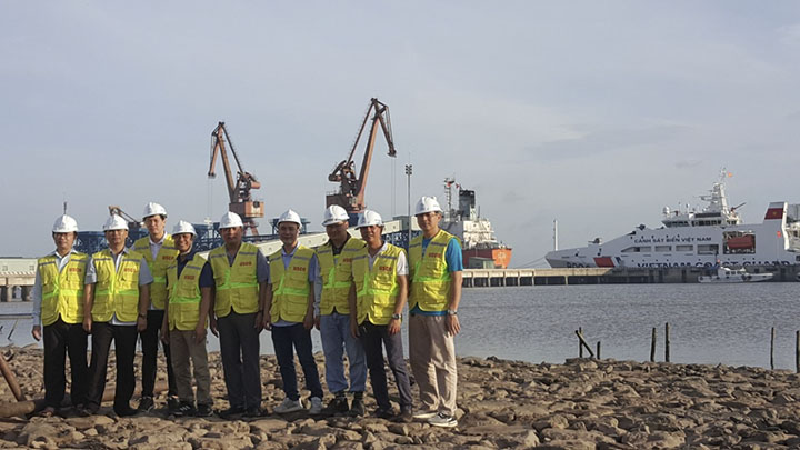 Đại diện Đại sứ quán Mỹ, Cảnh sát biển Việt Nam, Công ty URS, Công ty USC tại buổi kiểm tra, bàn giao công trình Dự án Hệ thống nâng hạ tàu, cơ sở bảo ...
