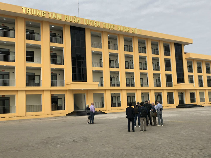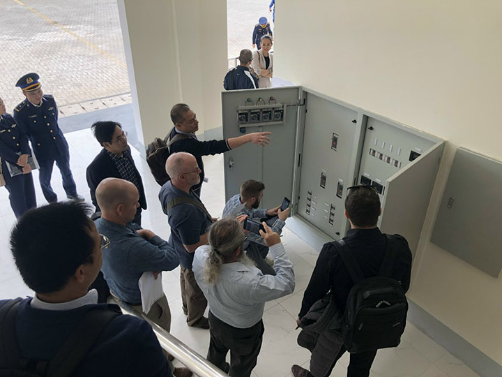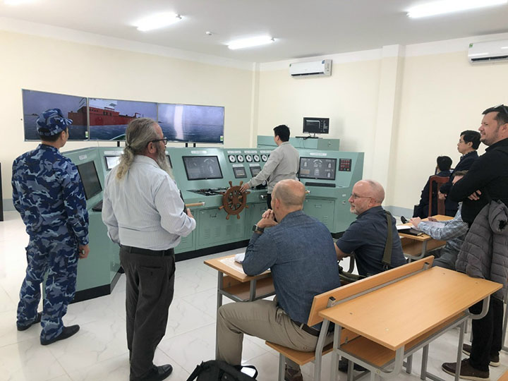 Đại diện Đại sứ quán Mỹ, Cảnh sát biển Việt Nam, Công ty URS, Công ty USC tại buổi kiểm tra, bàn giao công trình Dự án Hệ thống nâng hạ tàu, cơ sở bảo dưỡng và trung tâm huấn luyện của Bộ Tư lệnh vùng Cảnh sát biển 1 tại Hải Phòng