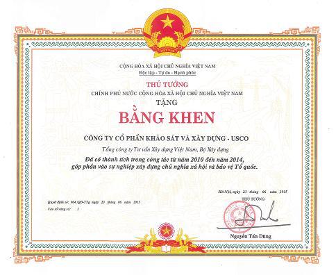 - Bằng khen của Thủ tướng Chính phủ cho giai đoạn 2010-2014