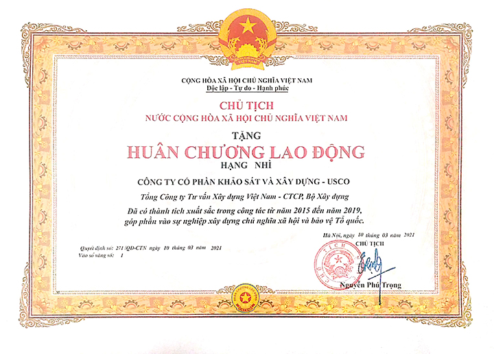 Cùng với bề dày kinh nghiệm trong lĩnh vực tư vấn khảo sát, Công ty Cổ phần Khảo sát & Xây dựng - USCo đã giành được nhiều giải thưởng cao quý do Chủ tịch nước, Thủ tướng Chính phủ trao tặng như: