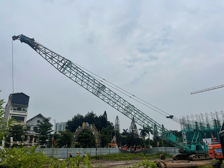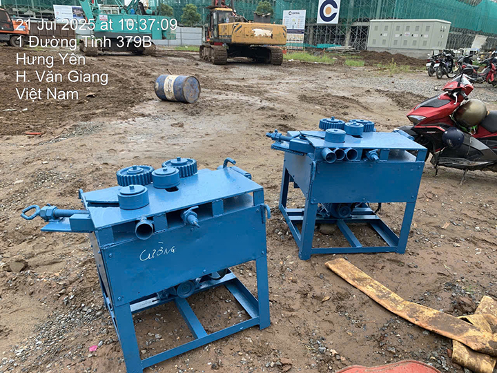 Tập kết và lắp dựng máy móc phục vụ công trình Thi công cọc khoan nhồi thí nghiệm, đại trà Dự án: Khu nhà ở phố mới Văn Giang- công trình tòa nhà thương mại dịch vụ, hỗn hợp tại Thị trấn Văn Giang, huyện Văn Giang, tỉnh Hưng Yên.