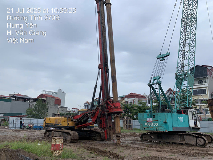 Thi công cọc khoan nhồi thí nghiệm, đại trà Dự án: Khu nhà ở phố mới Văn Giang- công trình tòa nhà thương mại dịch vụ, hỗn hợp tại Thị trấn Văn Giang, huyện Văn Giang, tỉnh Hưng Yên