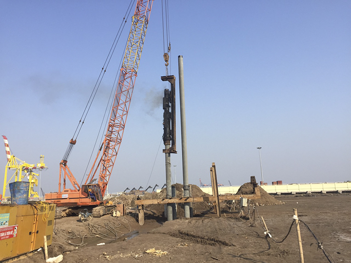 Hạng mục thi công đóng cọc thép D88 khu sàn nâng