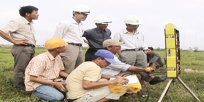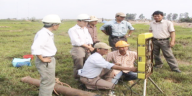 Chuyên gia tư vấn giám sát Systra Cộng hòa Pháp đang kiểm tra mẫu đất, đá do USCo khoan khảo sát và thí nghiệm của Dự án tuyến tàu điện ngầm Nhổn - ga ...